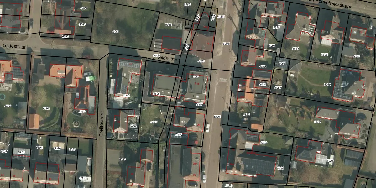 Gildestraat 11 is gelegen op kadastraal perceel OLO00C5607. Deze kadastrale aanduiding is uniek en wordt gebruikt door het Kadaster om eigendomsrechten en andere zakelijke rechten vast te leggen. Het perceel maakt onderdeel uit van de kadastrale gemeente Oploo.