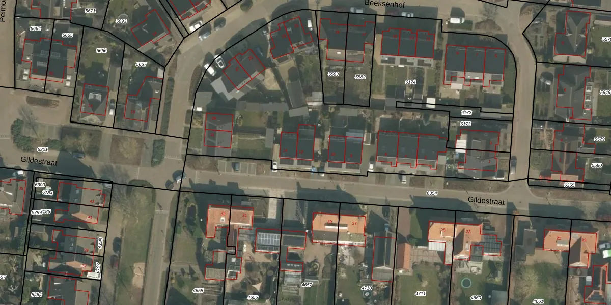 Gildestraat 12 is gelegen op kadastraal perceel OLO00C6174. Deze kadastrale aanduiding is uniek en wordt gebruikt door het Kadaster om eigendomsrechten en andere zakelijke rechten vast te leggen. Het perceel maakt onderdeel uit van de kadastrale gemeente Oploo.