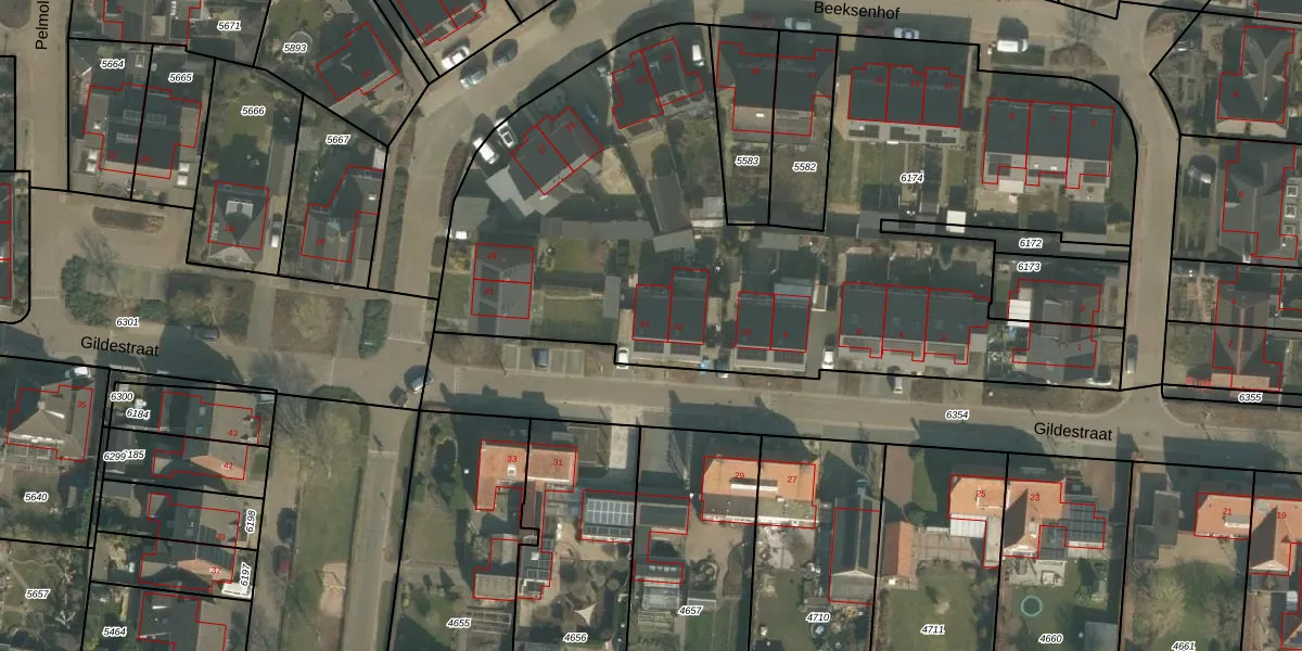 Gildestraat 14 is gelegen op kadastraal perceel OLO00C6174. Deze kadastrale aanduiding is uniek en wordt gebruikt door het Kadaster om eigendomsrechten en andere zakelijke rechten vast te leggen. Het perceel maakt onderdeel uit van de kadastrale gemeente Oploo.