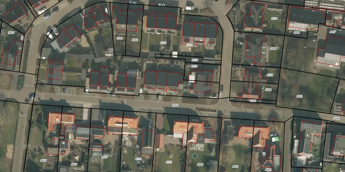 Gildestraat 2 is gelegen op kadastraal perceel OLO00C6174. Deze kadastrale aanduiding is uniek en wordt gebruikt door het Kadaster om eigendomsrechten en andere zakelijke rechten vast te leggen. Het perceel maakt onderdeel uit van de kadastrale gemeente Oploo.