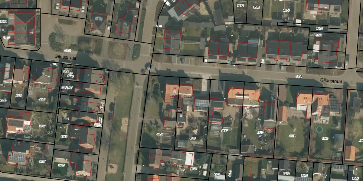 Gildestraat 31 is gelegen op kadastraal perceel OLO00C4656. Deze kadastrale aanduiding is uniek en wordt gebruikt door het Kadaster om eigendomsrechten en andere zakelijke rechten vast te leggen. Het perceel maakt onderdeel uit van de kadastrale gemeente Oploo.