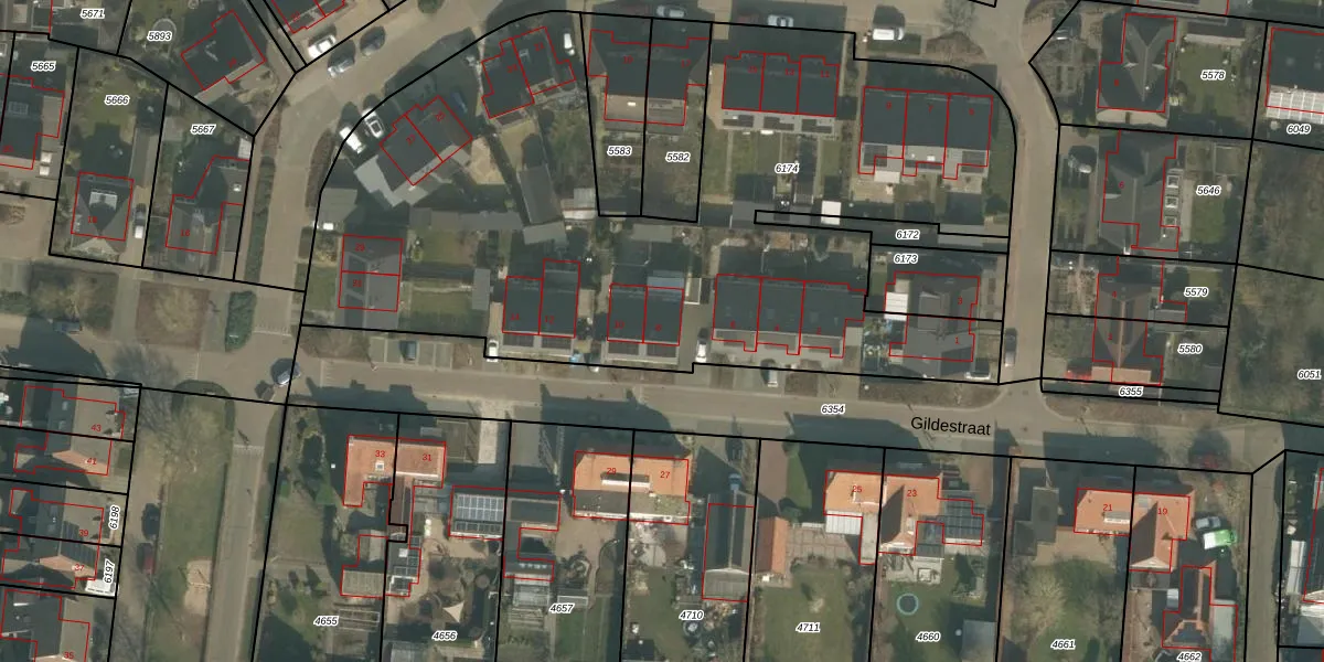 Gildestraat 8 is gelegen op kadastraal perceel OLO00C6174. Deze kadastrale aanduiding is uniek en wordt gebruikt door het Kadaster om eigendomsrechten en andere zakelijke rechten vast te leggen. Het perceel maakt onderdeel uit van de kadastrale gemeente Oploo.