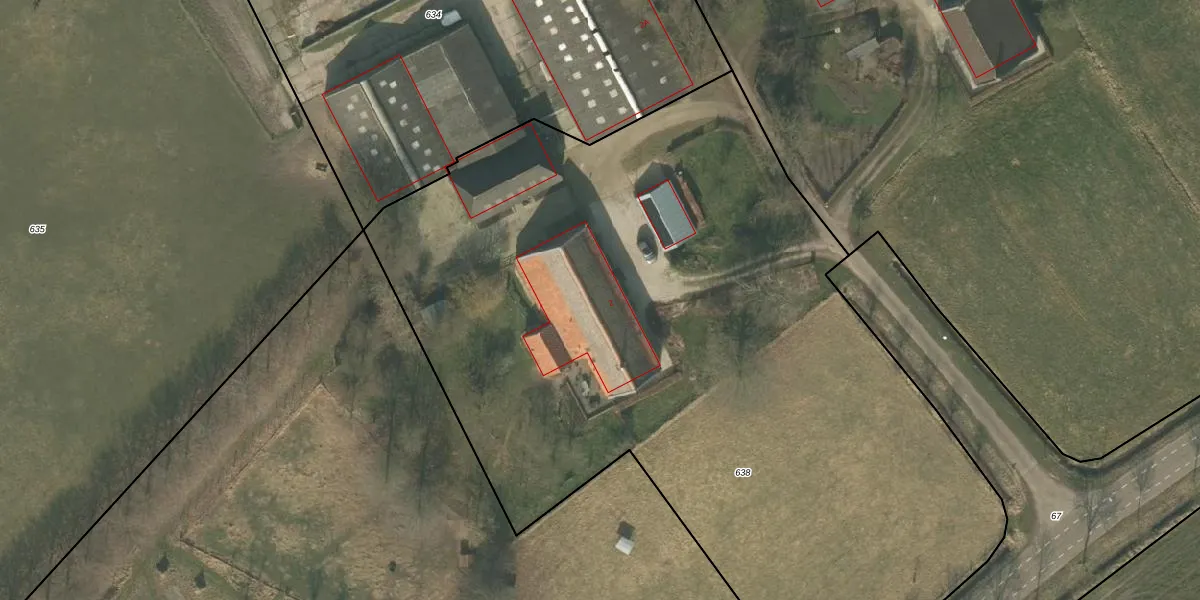 Het adres ligt op het perceel OLO00-M-638, dat zich in de kadastrale gemeente Oploo bevindt. Het perceel is kleiner dan gemiddeld in Oploo. Het perceel is 5720 m² groot, terwijl het gemiddelde ligt op 9279,09 m². Het kleinste perceel in de kadastrale gemeente is 0 m² groot. De grootste perceeloppervlakte is 5,11 km². Op het perceel bevinden zich geen andere adressen. De laatste wijziging in het de Basisregistratie Kadaster (BRK) was op 20-06-2007.