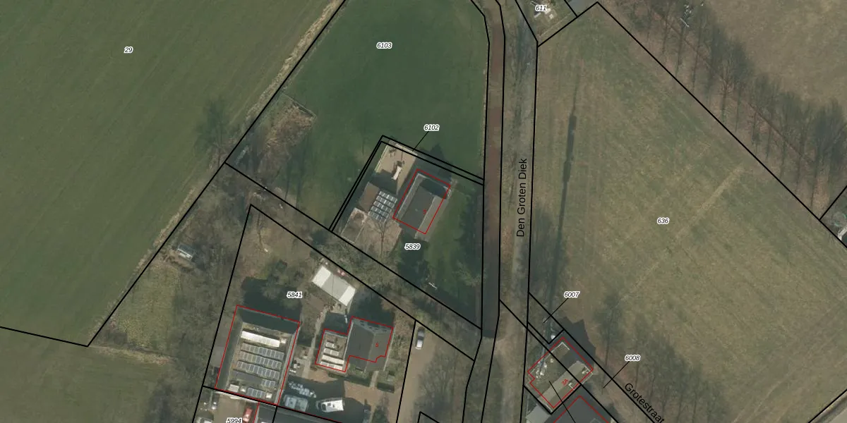 Grotestraat 5 is gelegen op kadastraal perceel OLO00C5839. Deze kadastrale aanduiding is uniek en wordt gebruikt door het Kadaster om eigendomsrechten en andere zakelijke rechten vast te leggen. Het perceel maakt onderdeel uit van de kadastrale gemeente Oploo.
