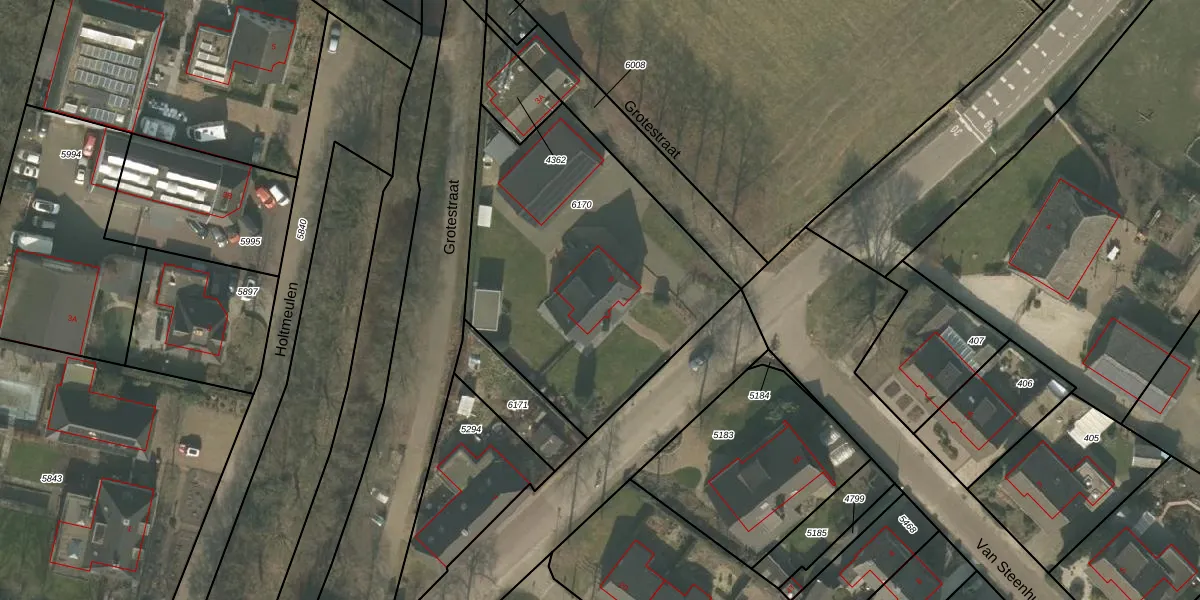 Grotestraat 6 is gelegen op kadastraal perceel OLO00C6170. Deze kadastrale aanduiding is uniek en wordt gebruikt door het Kadaster om eigendomsrechten en andere zakelijke rechten vast te leggen. Het perceel maakt onderdeel uit van de kadastrale gemeente Oploo.