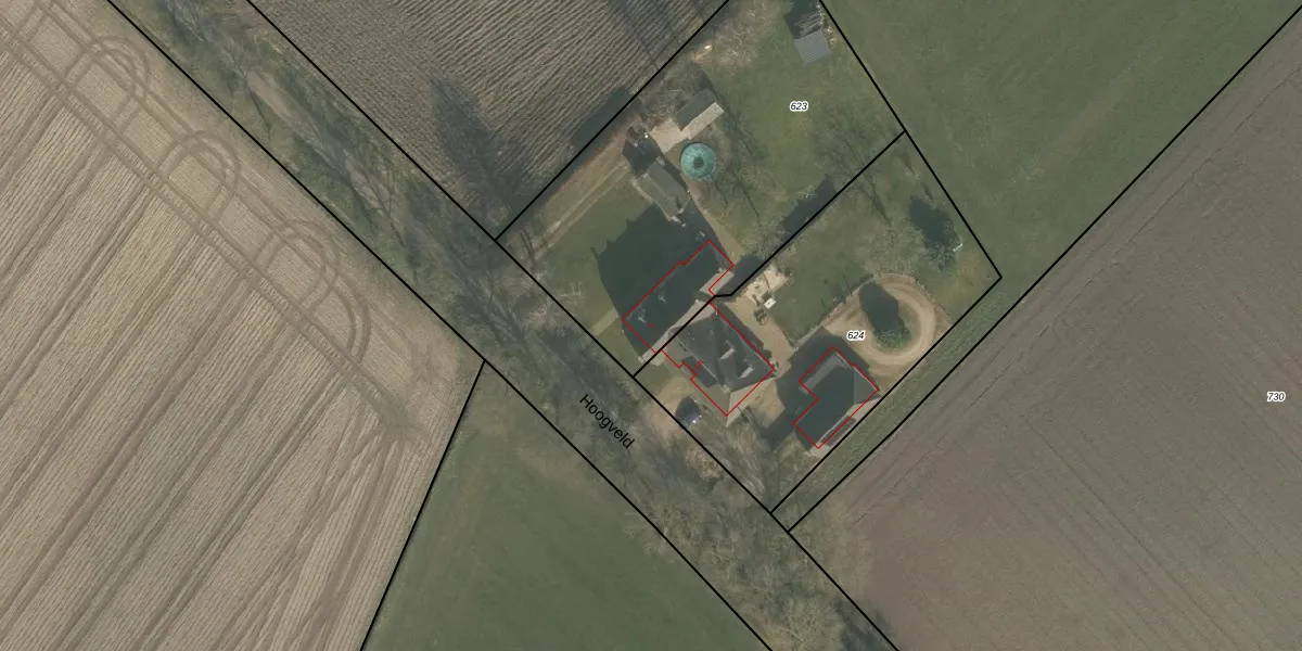 Hoogveld 1 is gelegen op kadastraal perceel OLO00M623. Deze kadastrale aanduiding is uniek en wordt gebruikt door het Kadaster om eigendomsrechten en andere zakelijke rechten vast te leggen. Het perceel maakt onderdeel uit van de kadastrale gemeente Oploo.