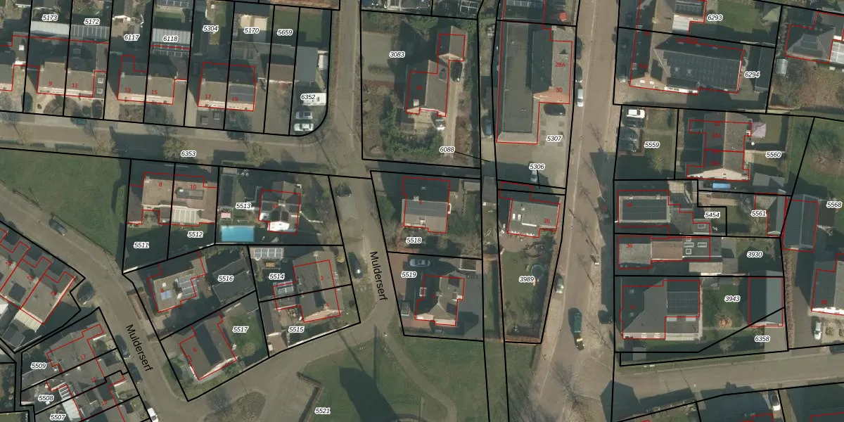 Mulderserf 1 is gelegen op kadastraal perceel OLO00C5518. Deze kadastrale aanduiding is uniek en wordt gebruikt door het Kadaster om eigendomsrechten en andere zakelijke rechten vast te leggen. Het perceel maakt onderdeel uit van de kadastrale gemeente Oploo.