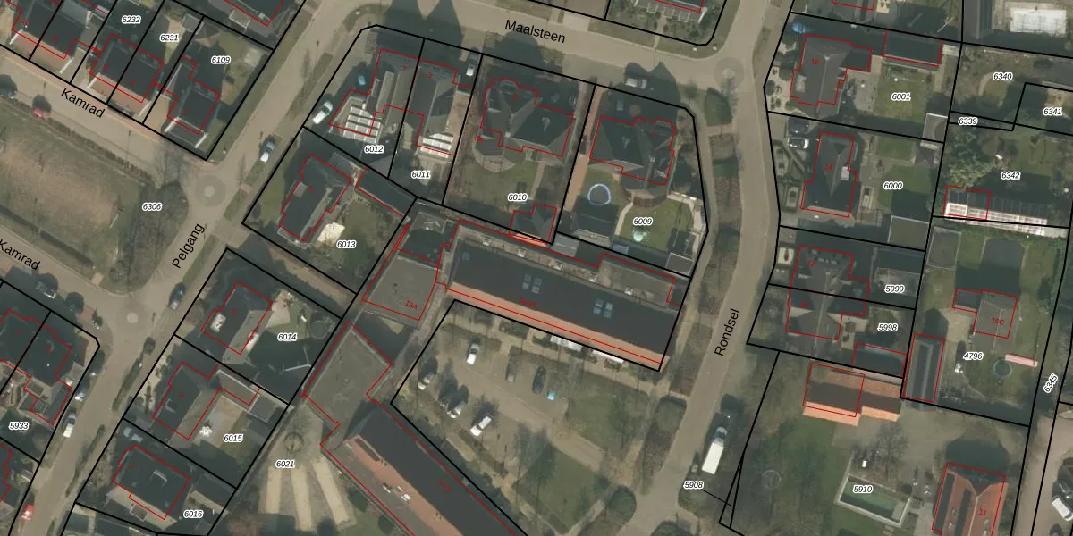 Het perceel waarop Rondsel 19 staat heeft een oppervlakte van 2728 m². Dit is een zeer groot perceel. De perceeloppervlakte wordt geregistreerd door het Kadaster. Gedetailleerde informatie over de maten van dit perceel kunt u vinden in het rapport Kadastrale kaart met maatvoering van Rondsel 19.