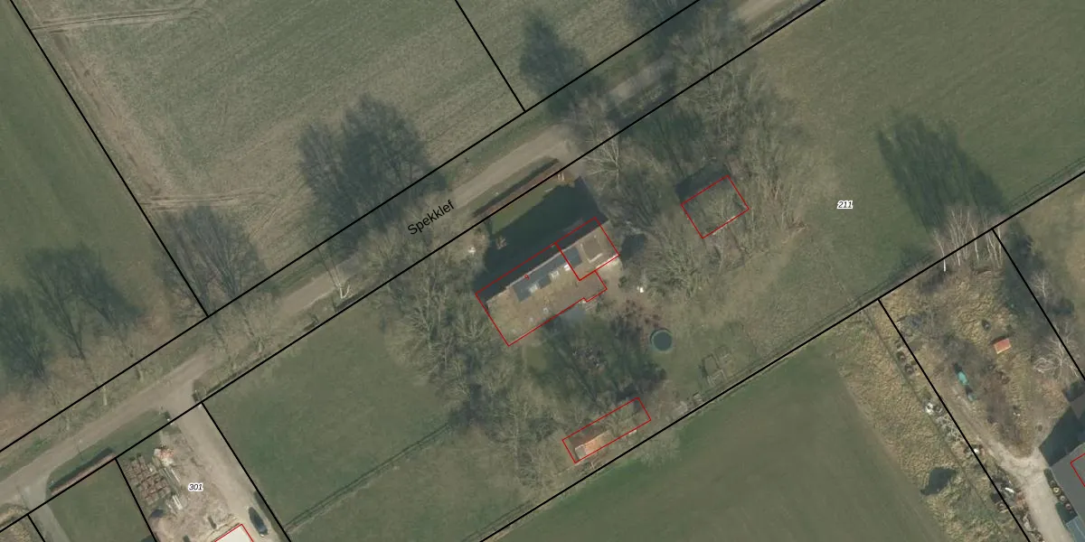 Spekklef 9 is gelegen op kadastraal perceel OLO00Q211. Deze kadastrale aanduiding is uniek en wordt gebruikt door het Kadaster om eigendomsrechten en andere zakelijke rechten vast te leggen. Het perceel maakt onderdeel uit van de kadastrale gemeente Oploo.