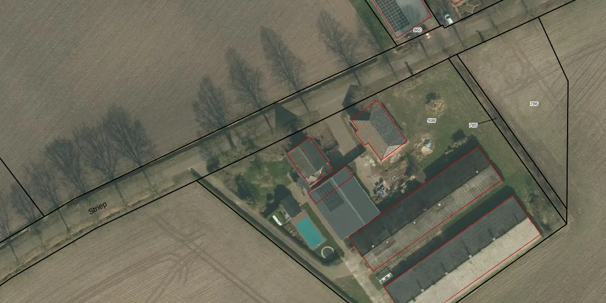 Striep 6 is gelegen op kadastraal perceel OLO00M598. Deze kadastrale aanduiding is uniek en wordt gebruikt door het Kadaster om eigendomsrechten en andere zakelijke rechten vast te leggen. Het perceel maakt onderdeel uit van de kadastrale gemeente Oploo.