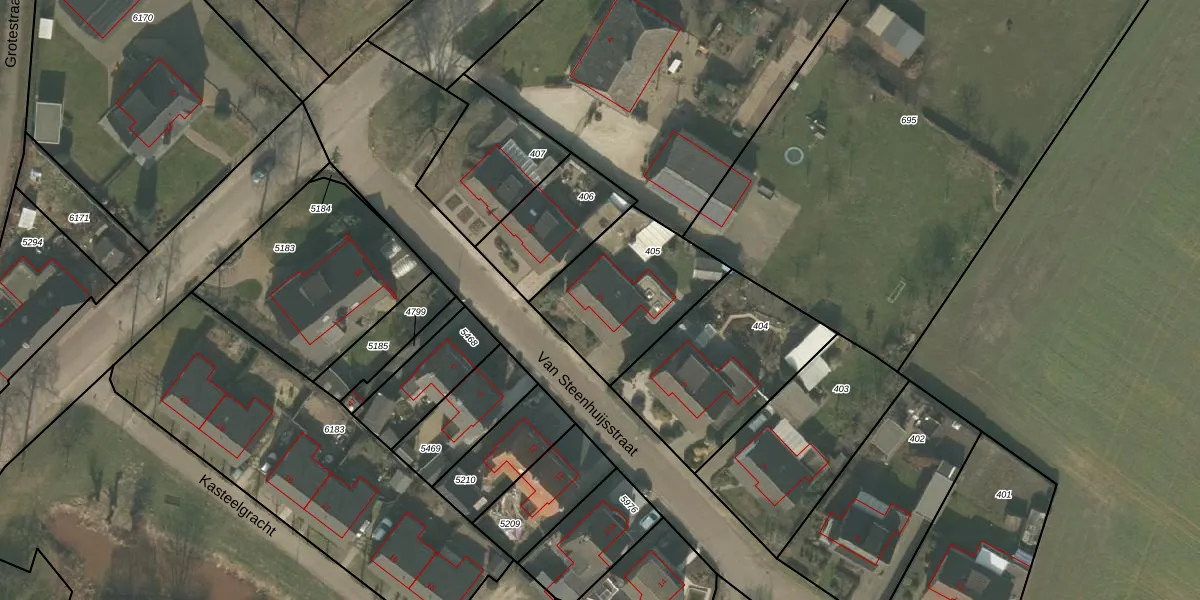 Van Steenhuijsstraat 3 is gelegen op kadastraal perceel OLO00M405. Deze kadastrale aanduiding is uniek en wordt gebruikt door het Kadaster om eigendomsrechten en andere zakelijke rechten vast te leggen. Het perceel maakt onderdeel uit van de kadastrale gemeente Oploo.