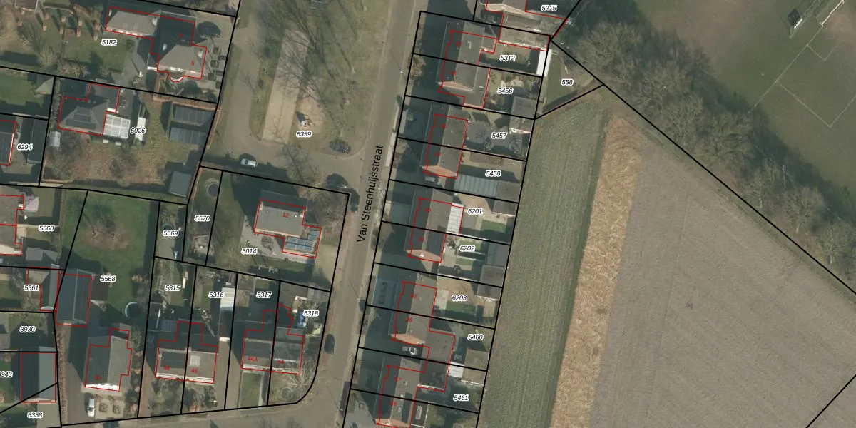 Van Steenhuijsstraat 49 is gelegen op kadastraal perceel OLO00C6201. Deze kadastrale aanduiding is uniek en wordt gebruikt door het Kadaster om eigendomsrechten en andere zakelijke rechten vast te leggen. Het perceel maakt onderdeel uit van de kadastrale gemeente Oploo.