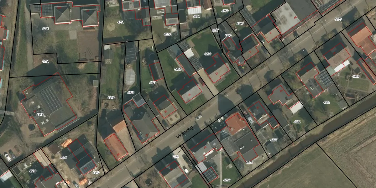 Vloetweg 14 is gelegen op kadastraal perceel OLO00C5010. Deze kadastrale aanduiding is uniek en wordt gebruikt door het Kadaster om eigendomsrechten en andere zakelijke rechten vast te leggen. Het perceel maakt onderdeel uit van de kadastrale gemeente Oploo.