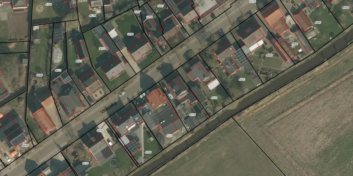 Vloetweg 25 is gelegen op kadastraal perceel OLO00C4375. Deze kadastrale aanduiding is uniek en wordt gebruikt door het Kadaster om eigendomsrechten en andere zakelijke rechten vast te leggen. Het perceel maakt onderdeel uit van de kadastrale gemeente Oploo.
