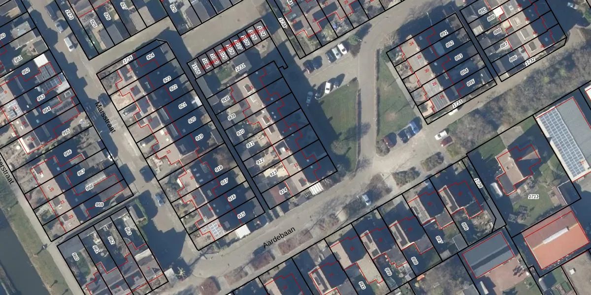 Het perceel waarop Aardebaan 13 staat heeft een oppervlakte van 162 m². Dit is een middelgroot perceel. De perceeloppervlakte wordt geregistreerd door het Kadaster. Gedetailleerde informatie over de maten van dit perceel kunt u vinden in het rapport Kadastrale kaart met maatvoering van Aardebaan 13.