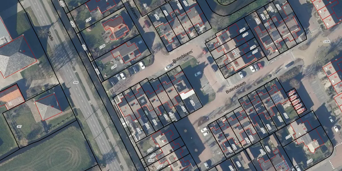 Het perceel waarop Boterbloem 12 staat heeft een oppervlakte van 156 m². Dit is een middelgroot perceel. De perceeloppervlakte wordt geregistreerd door het Kadaster. Gedetailleerde informatie over de maten van dit perceel kunt u vinden in het rapport Kadastrale kaart met maatvoering van Boterbloem 12.
