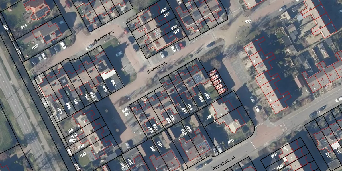 Het perceel waarop Boterbloem 32 staat heeft een oppervlakte van 154 m². Dit is een middelgroot perceel. De perceeloppervlakte wordt geregistreerd door het Kadaster. Gedetailleerde informatie over de maten van dit perceel kunt u vinden in het rapport Kadastrale kaart met maatvoering van Boterbloem 32.