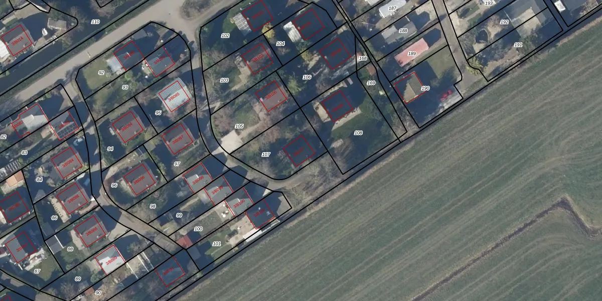 Het adres ligt op het perceel OMR01-T-107, dat zich in de kadastrale gemeente Opmeer bevindt. Het perceel is kleiner dan gemiddeld in Opmeer. Het perceel is 403 m² groot, terwijl het gemiddelde ligt op 5374,6 m². Het grootste perceel in de kadastrale gemeente is 39,0 ha. Het kleinste perceel heeft een oppervlakte van 0 m². Op het perceel bevinden zich geen andere adressen. In de Basisregistratie Kadaster (BRK) werden de grenzen van het perceel geregistreerd op 23-10-1997.