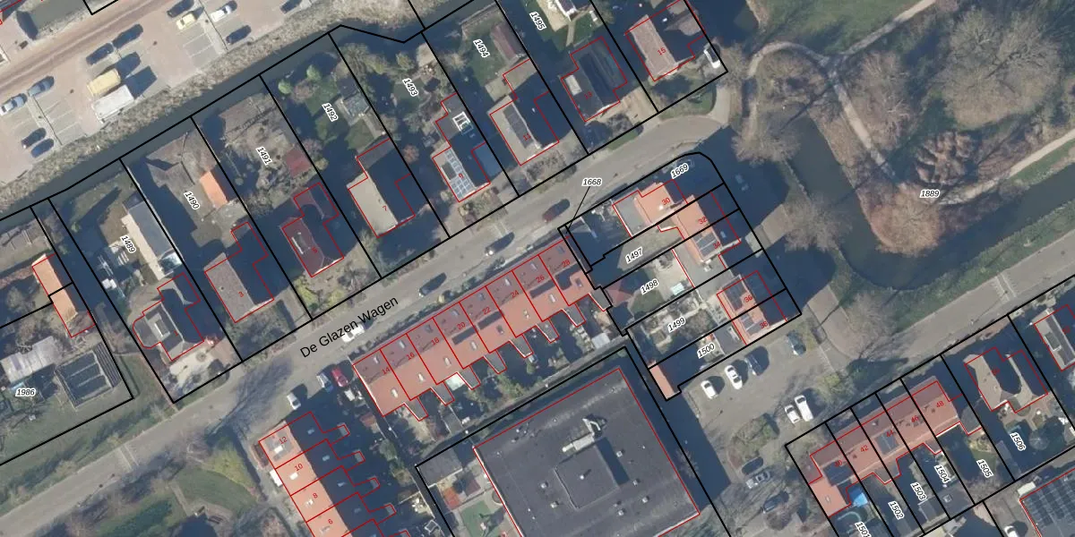 Het perceel waarop De Glazen Wagen 26 staat heeft een oppervlakte van 3,4 ha. Dit is een zeer groot perceel. De perceeloppervlakte wordt geregistreerd door het Kadaster. Gedetailleerde informatie over de maten van dit perceel kunt u vinden in het rapport Kadastrale kaart met maatvoering van De Glazen Wagen 26.
