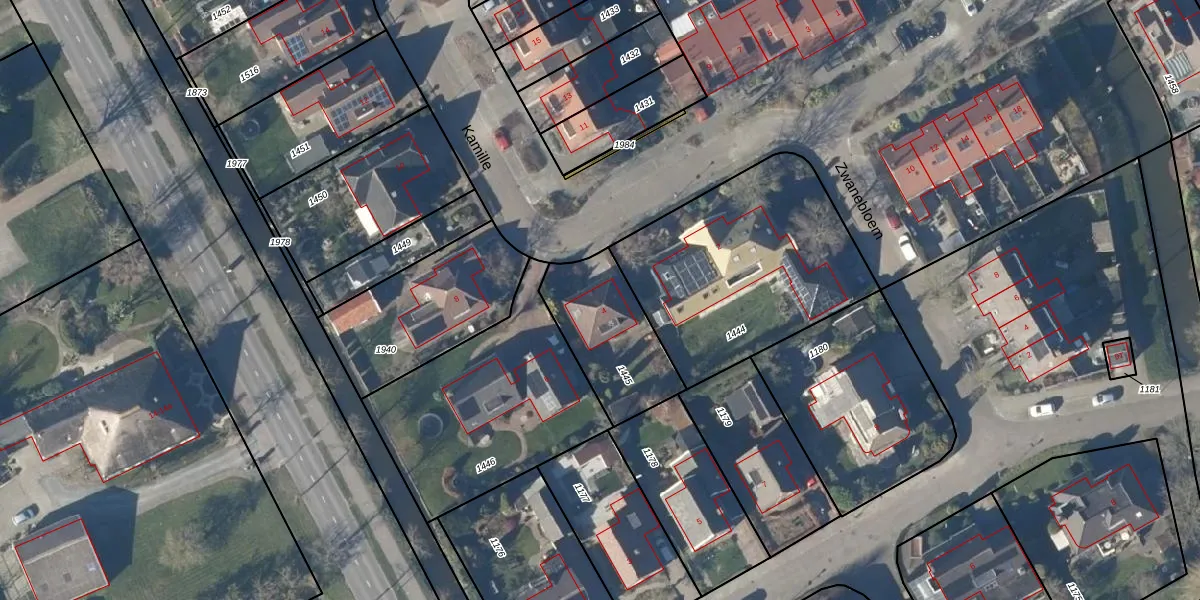 Het perceel waarop Kamille 4 staat heeft een oppervlakte van 379 m². Dit is een groot perceel. De perceeloppervlakte wordt geregistreerd door het Kadaster. Gedetailleerde informatie over de maten van dit perceel kunt u vinden in het rapport Kadastrale kaart met maatvoering van Kamille 4.