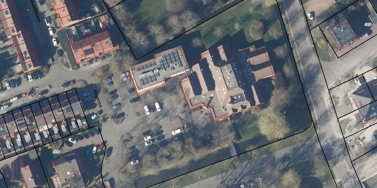 Het perceel waarop Klaproos 1 staat heeft een oppervlakte van 5,4 ha. Dit is een zeer groot perceel. De perceeloppervlakte wordt geregistreerd door het Kadaster. Gedetailleerde informatie over de maten van dit perceel kunt u vinden in het rapport Kadastrale kaart met maatvoering van Klaproos 1.