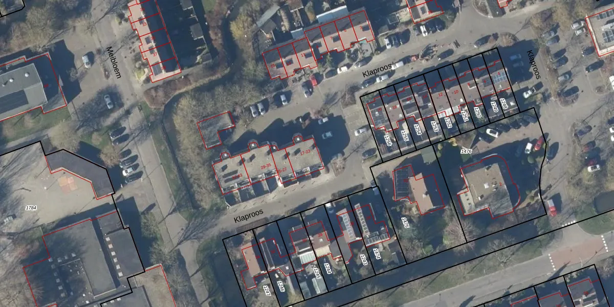 Het perceel waarop Klaproos 17 staat heeft een oppervlakte van 5,4 ha. Dit is een zeer groot perceel. De perceeloppervlakte wordt geregistreerd door het Kadaster. Gedetailleerde informatie over de maten van dit perceel kunt u vinden in het rapport Kadastrale kaart met maatvoering van Klaproos 17.