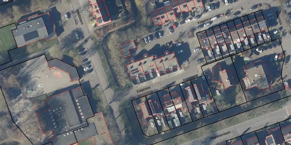 Het perceel waarop Klaproos 35 staat heeft een oppervlakte van 5,4 ha. Dit is een zeer groot perceel. De perceeloppervlakte wordt geregistreerd door het Kadaster. Gedetailleerde informatie over de maten van dit perceel kunt u vinden in het rapport Kadastrale kaart met maatvoering van Klaproos 35.