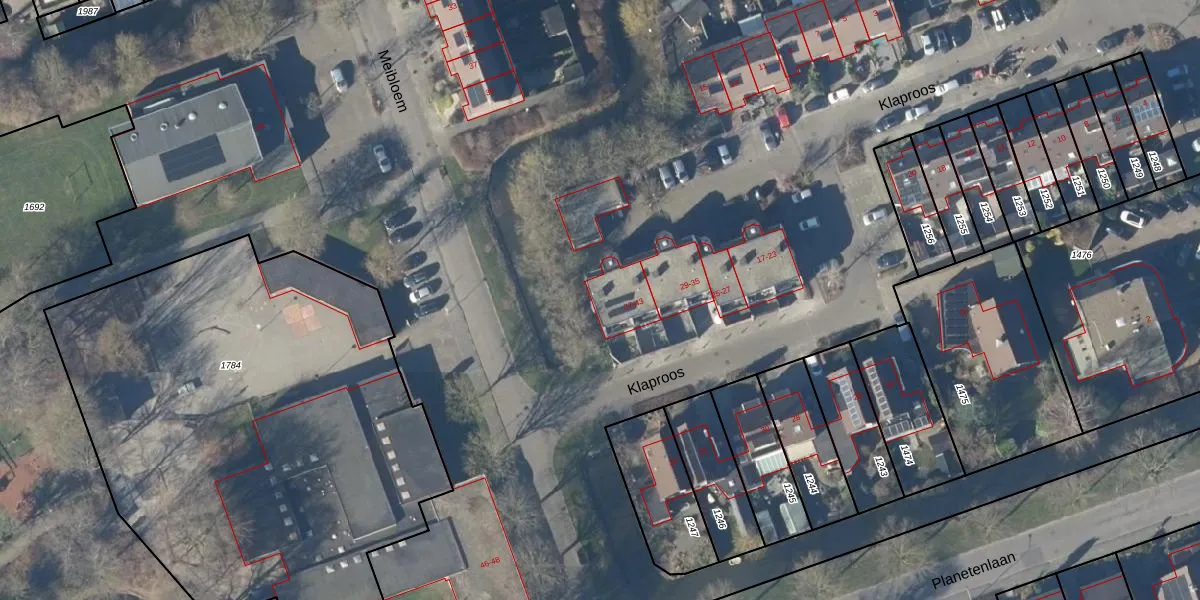Het perceel waarop Klaproos 41 staat heeft een oppervlakte van 5,4 ha. Dit is een zeer groot perceel. De perceeloppervlakte wordt geregistreerd door het Kadaster. Gedetailleerde informatie over de maten van dit perceel kunt u vinden in het rapport Kadastrale kaart met maatvoering van Klaproos 41.