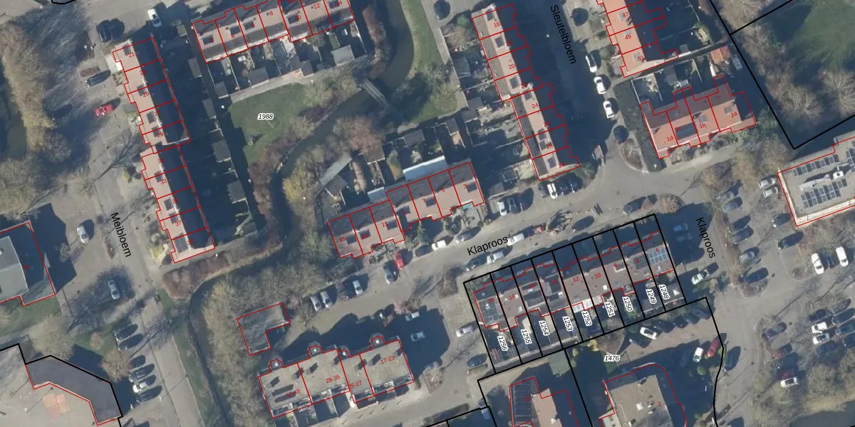 Het perceel waarop Klaproos 7 staat heeft een oppervlakte van 5,4 ha. Dit is een zeer groot perceel. De perceeloppervlakte wordt geregistreerd door het Kadaster. Gedetailleerde informatie over de maten van dit perceel kunt u vinden in het rapport Kadastrale kaart met maatvoering van Klaproos 7.