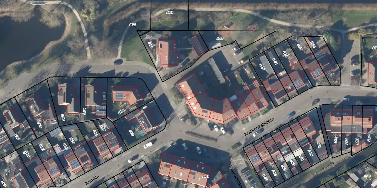 Het perceel waarop Koekoeksbloem 15 staat heeft een oppervlakte van 3,7 ha. Dit is een zeer groot perceel. De perceeloppervlakte wordt geregistreerd door het Kadaster. Gedetailleerde informatie over de maten van dit perceel kunt u vinden in het rapport Kadastrale kaart met maatvoering van Koekoeksbloem 15.