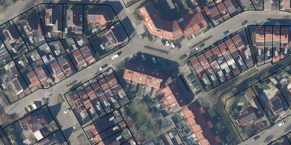 Het perceel waarop Koekoeksbloem 26 staat heeft een oppervlakte van 3,7 ha. Dit is een zeer groot perceel. De perceeloppervlakte wordt geregistreerd door het Kadaster. Gedetailleerde informatie over de maten van dit perceel kunt u vinden in het rapport Kadastrale kaart met maatvoering van Koekoeksbloem 26.