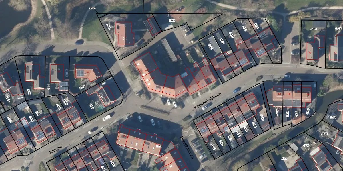 Het perceel waarop Koekoeksbloem 27 staat heeft een oppervlakte van 3,7 ha. Dit is een zeer groot perceel. De perceeloppervlakte wordt geregistreerd door het Kadaster. Gedetailleerde informatie over de maten van dit perceel kunt u vinden in het rapport Kadastrale kaart met maatvoering van Koekoeksbloem 27.