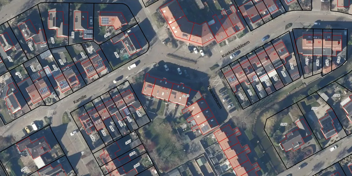 Het perceel waarop Koekoeksbloem 28 staat heeft een oppervlakte van 3,7 ha. Dit is een zeer groot perceel. De perceeloppervlakte wordt geregistreerd door het Kadaster. Gedetailleerde informatie over de maten van dit perceel kunt u vinden in het rapport Kadastrale kaart met maatvoering van Koekoeksbloem 28.