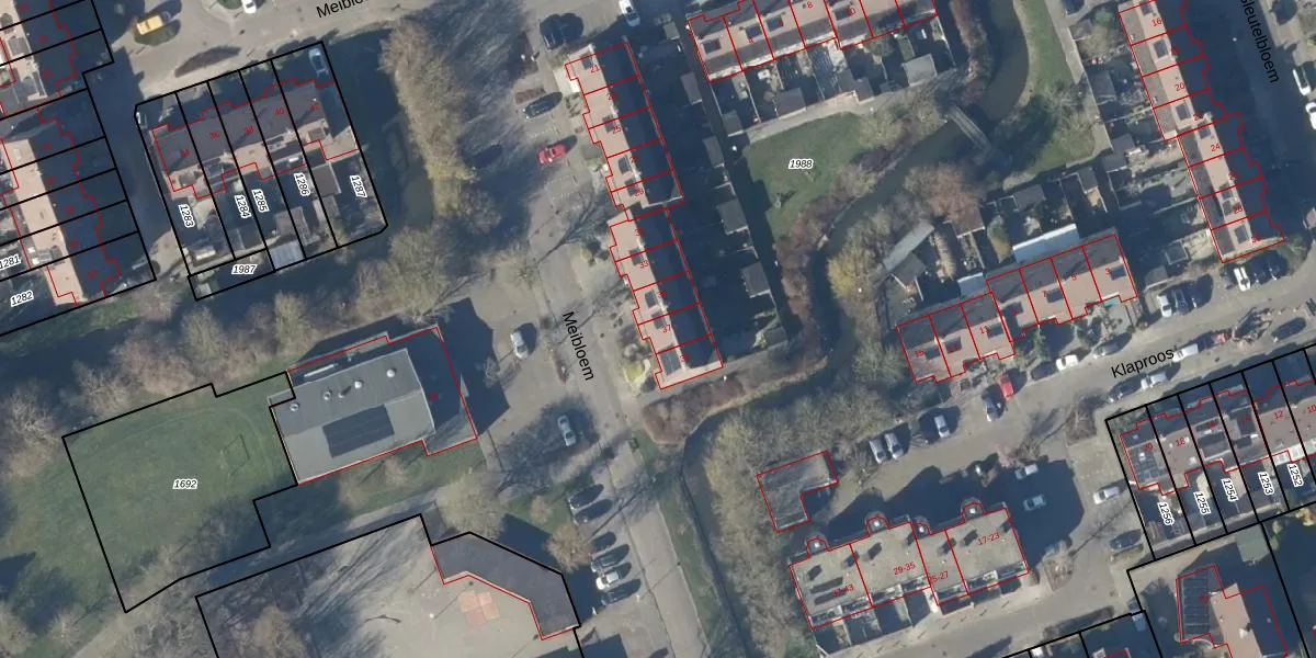 Het perceel waarop Meibloem 37 staat heeft een oppervlakte van 5,4 ha. Dit is een zeer groot perceel. De perceeloppervlakte wordt geregistreerd door het Kadaster. Gedetailleerde informatie over de maten van dit perceel kunt u vinden in het rapport Kadastrale kaart met maatvoering van Meibloem 37.