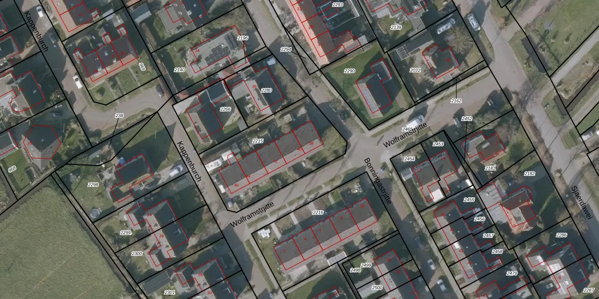 Bonningastrjitte 40 is gelegen op kadastraal perceel OPH00B2215. Deze kadastrale aanduiding is uniek en wordt gebruikt door het Kadaster om eigendomsrechten en andere zakelijke rechten vast te leggen. Het perceel maakt onderdeel uit van de kadastrale gemeente Oppenhuizen.