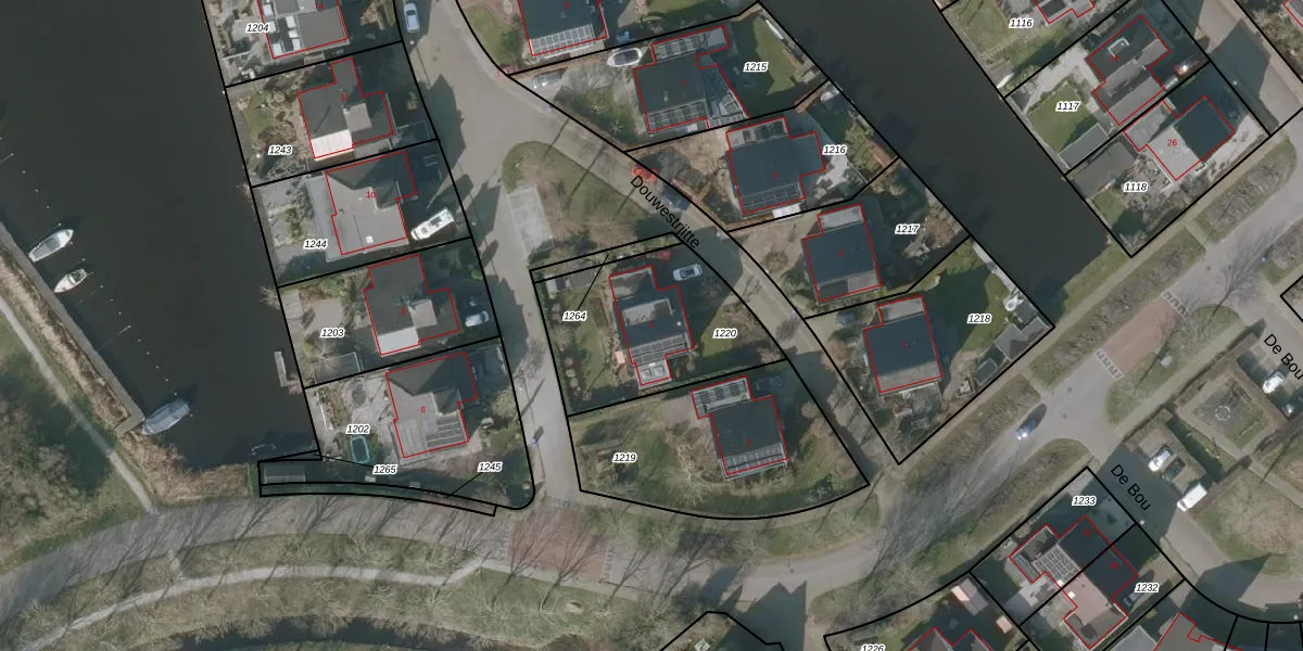 Het perceel waarop Douwestrjitte 4 staat heeft een oppervlakte van 635 m². Dit is een groot perceel. De perceeloppervlakte wordt geregistreerd door het Kadaster. Gedetailleerde informatie over de maten van dit perceel kunt u vinden in het rapport Kadastrale kaart met maatvoering van Douwestrjitte 4.