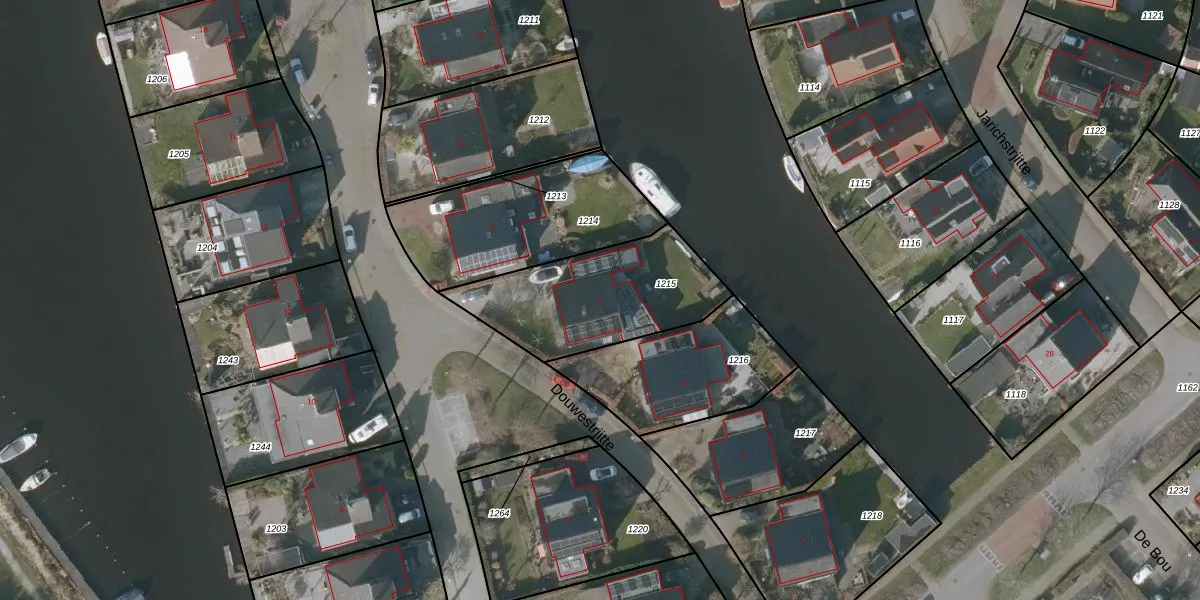 Het perceel waarop Douwestrjitte 7 staat heeft een oppervlakte van 594 m². Dit is een groot perceel. De perceeloppervlakte wordt geregistreerd door het Kadaster. Gedetailleerde informatie over de maten van dit perceel kunt u vinden in het rapport Kadastrale kaart met maatvoering van Douwestrjitte 7.