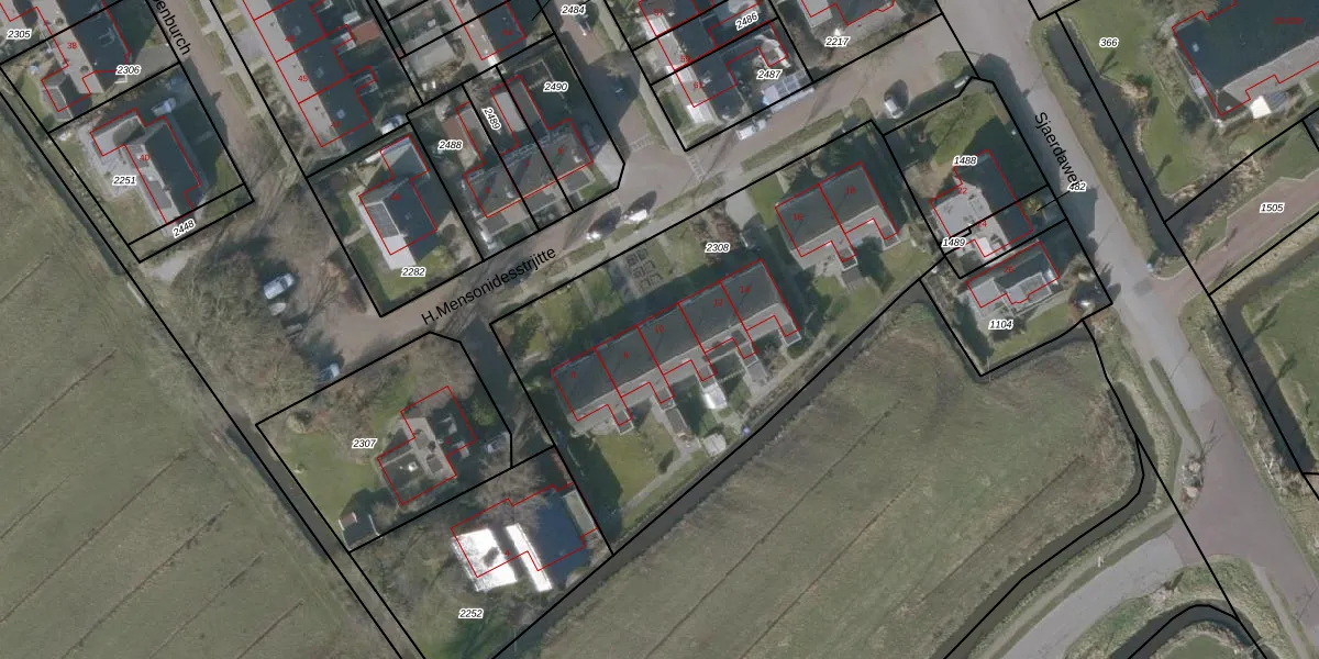 H.Mensonidesstrjitte 10 is gelegen op kadastraal perceel OPH00B2308. Deze kadastrale aanduiding is uniek en wordt gebruikt door het Kadaster om eigendomsrechten en andere zakelijke rechten vast te leggen. Het perceel maakt onderdeel uit van de kadastrale gemeente Oppenhuizen.