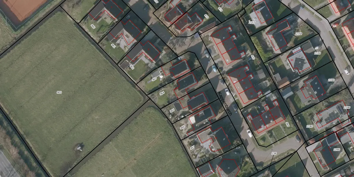 Kappenburch 12 is gelegen op kadastraal perceel OPH00G964. Deze kadastrale aanduiding is uniek en wordt gebruikt door het Kadaster om eigendomsrechten en andere zakelijke rechten vast te leggen. Het perceel maakt onderdeel uit van de kadastrale gemeente Oppenhuizen.