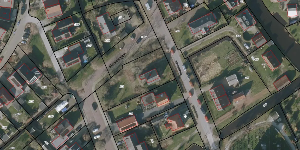 Het perceel waarop Noardein 78 staat heeft een oppervlakte van 1093 m². Dit is een zeer groot perceel. De perceeloppervlakte wordt geregistreerd door het Kadaster. Gedetailleerde informatie over de maten van dit perceel kunt u vinden in het rapport Kadastrale kaart met maatvoering van Noardein 78.