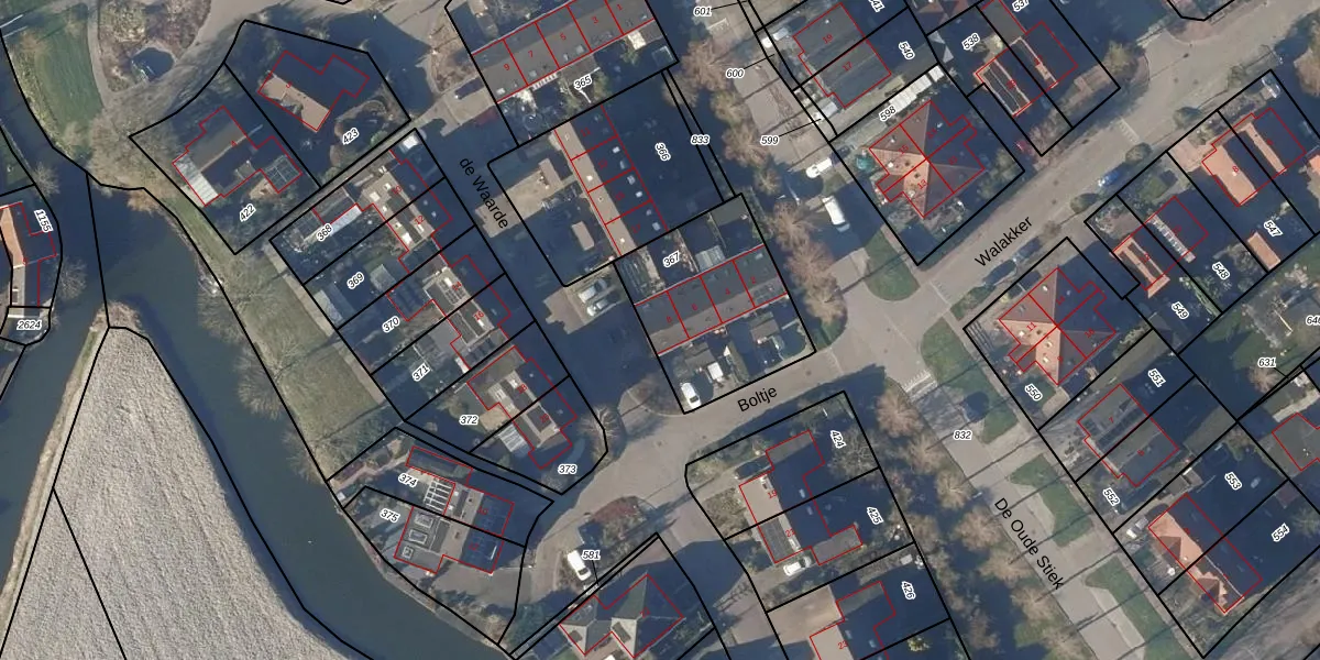 Het perceel waarop Boltje 8 staat heeft een oppervlakte van 575 m². Dit is een groot perceel. De perceeloppervlakte wordt geregistreerd door het Kadaster. Gedetailleerde informatie over de maten van dit perceel kunt u vinden in het rapport Kadastrale kaart met maatvoering van Boltje 8.
