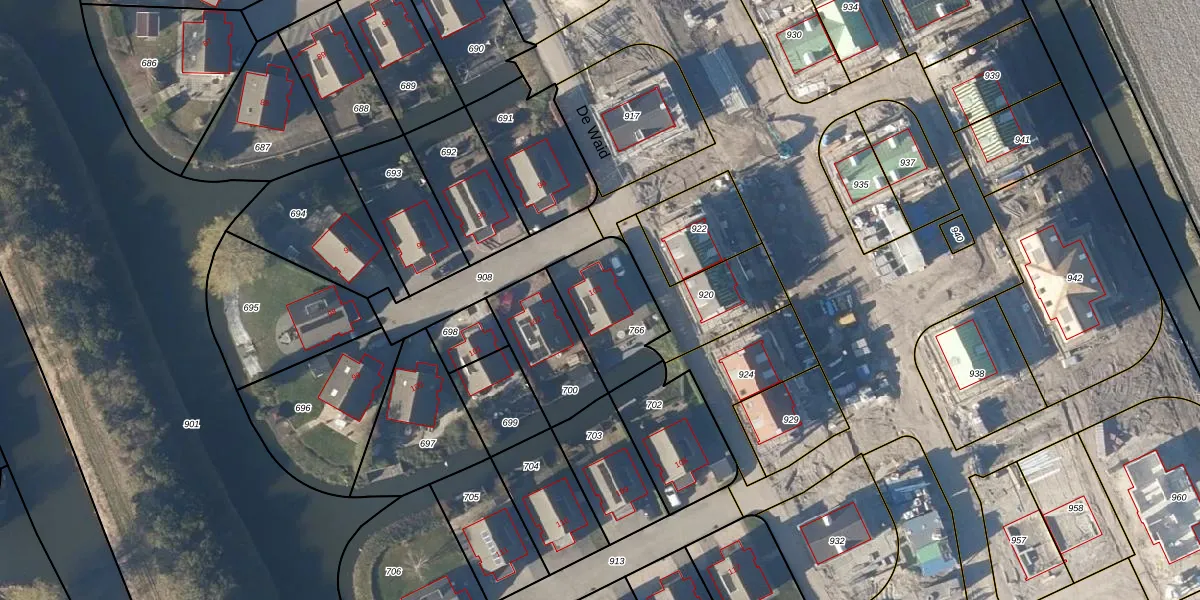 Het perceel waarop De Waid 103 staat heeft een oppervlakte van 300 m². Dit is een groot perceel. De perceeloppervlakte wordt geregistreerd door het Kadaster. Gedetailleerde informatie over de maten van dit perceel kunt u vinden in het rapport Kadastrale kaart met maatvoering van De Waid 103.