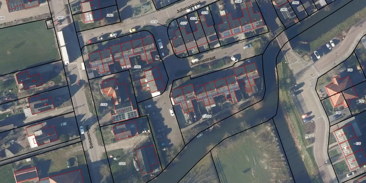 Julianastraat 20 is gelegen op kadastraal perceel KGL01T2594. Deze kadastrale aanduiding is uniek en wordt gebruikt door het Kadaster om eigendomsrechten en andere zakelijke rechten vast te leggen. Het perceel maakt onderdeel uit van de kadastrale gemeente Noorder-Koggenland.