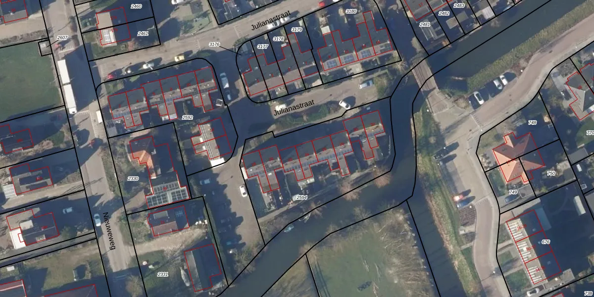 Julianastraat 24 is gelegen op kadastraal perceel KGL01T2594. Deze kadastrale aanduiding is uniek en wordt gebruikt door het Kadaster om eigendomsrechten en andere zakelijke rechten vast te leggen. Het perceel maakt onderdeel uit van de kadastrale gemeente Noorder-Koggenland.