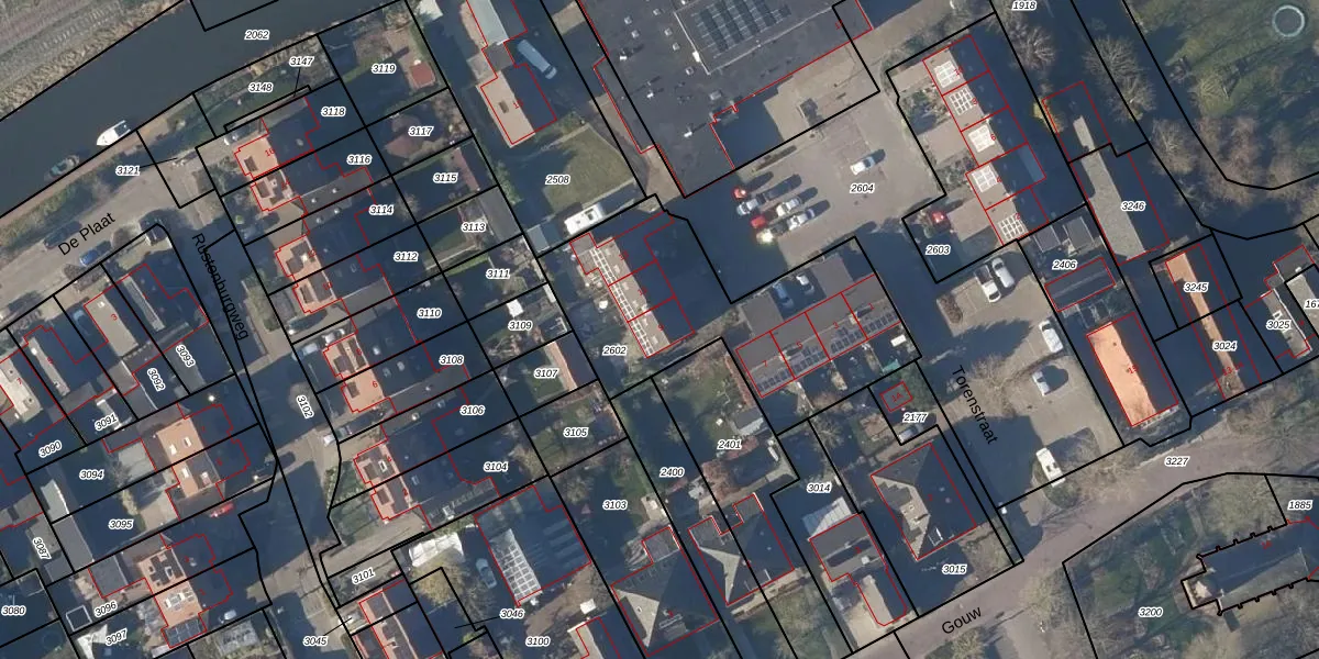 Het perceel waarop Torenstraat 9 staat heeft een oppervlakte van 1064 m². Dit is een zeer groot perceel. De perceeloppervlakte wordt geregistreerd door het Kadaster. Gedetailleerde informatie over de maten van dit perceel kunt u vinden in het rapport Kadastrale kaart met maatvoering van Torenstraat 9.