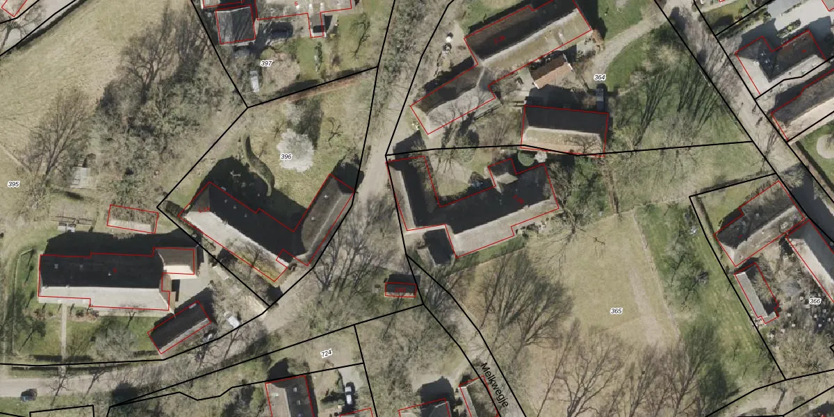 Het perceel waarop Melkwegje 2 staat heeft een oppervlakte van 4820 m². Dit is een zeer groot perceel. De perceeloppervlakte wordt geregistreerd door het Kadaster. Gedetailleerde informatie over de maten van dit perceel kunt u vinden in het rapport Kadastrale kaart met maatvoering van Melkwegje 2.