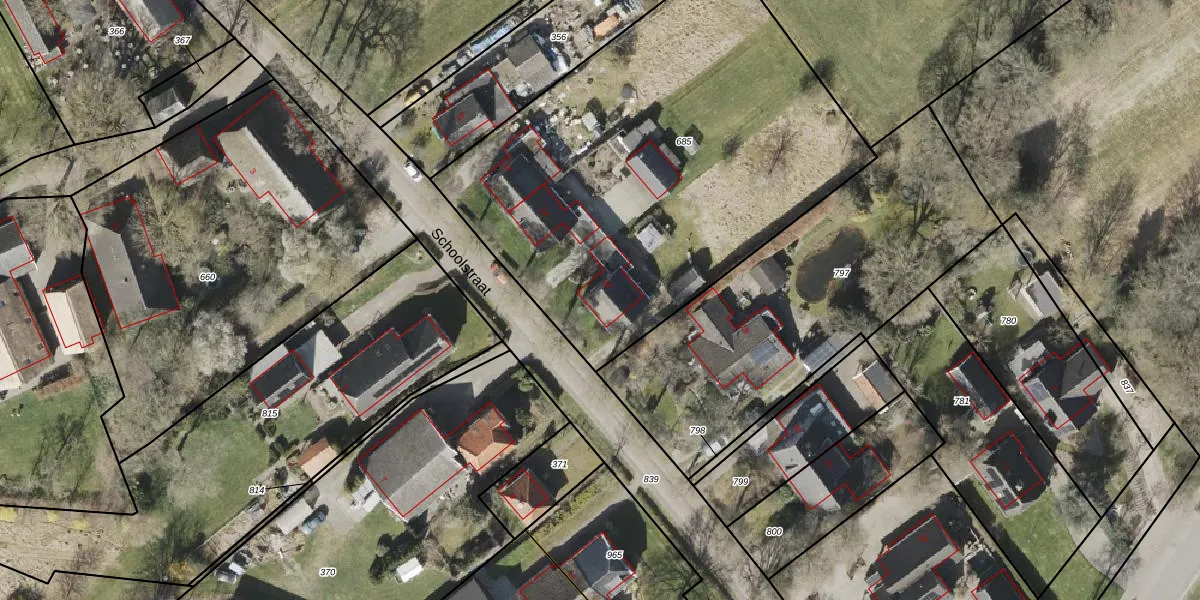 Het perceel waarop Schoolstraat 16 staat heeft een oppervlakte van 2555 m². Dit is een zeer groot perceel. De perceeloppervlakte wordt geregistreerd door het Kadaster. Gedetailleerde informatie over de maten van dit perceel kunt u vinden in het rapport Kadastrale kaart met maatvoering van Schoolstraat 16.