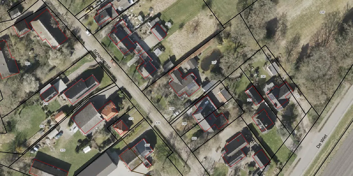 Het perceel waarop Schoolstraat 18 staat heeft een oppervlakte van 1571 m². Dit is een zeer groot perceel. De perceeloppervlakte wordt geregistreerd door het Kadaster. Gedetailleerde informatie over de maten van dit perceel kunt u vinden in het rapport Kadastrale kaart met maatvoering van Schoolstraat 18.