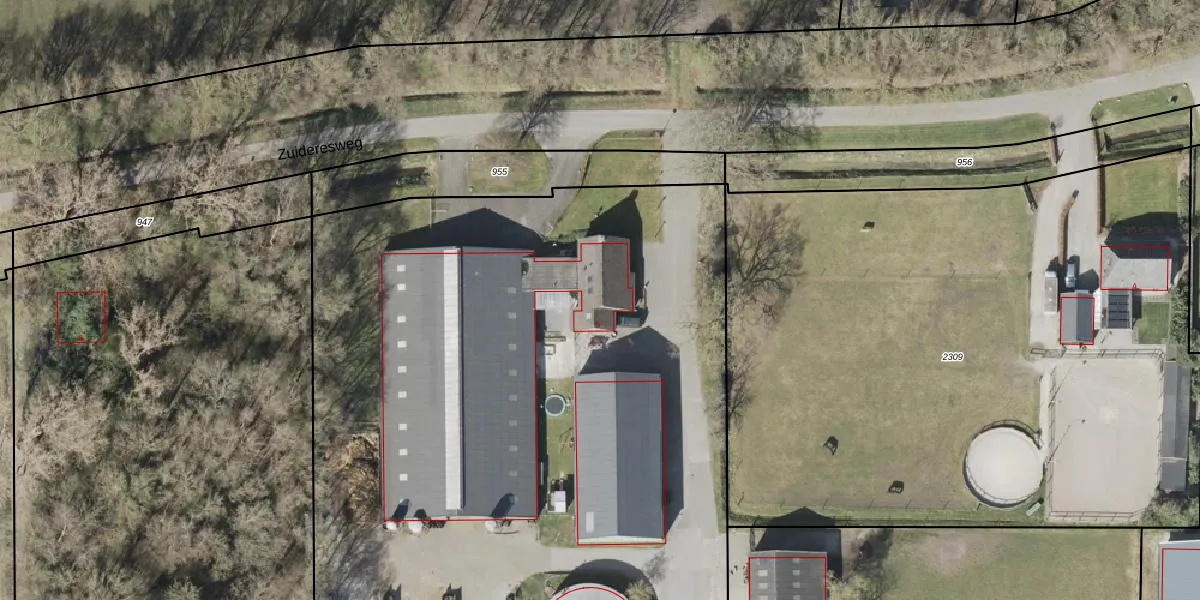 Het perceel waarop Zuideresweg 6 staat heeft een oppervlakte van 16,1 ha. Dit is een zeer groot perceel. De perceeloppervlakte wordt geregistreerd door het Kadaster. Gedetailleerde informatie over de maten van dit perceel kunt u vinden in het rapport Kadastrale kaart met maatvoering van Zuideresweg 6.