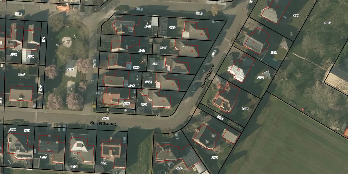 Buizerdstraat 15 is gelegen op kadastraal perceel NDW00L2769. Deze kadastrale aanduiding is uniek en wordt gebruikt door het Kadaster om eigendomsrechten en andere zakelijke rechten vast te leggen. Het perceel maakt onderdeel uit van de kadastrale gemeente Nederweert.